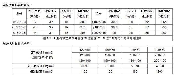 組合填料參數規格:單元直徑Φ150mm,間距有80mm、100mm兩種規格。中心繩有塑料繩及纖維繩兩種。組合填料訂貨須知: 訂貨請明確所需組合填料的長度、立方數、間距、參數規格等 .jpg)